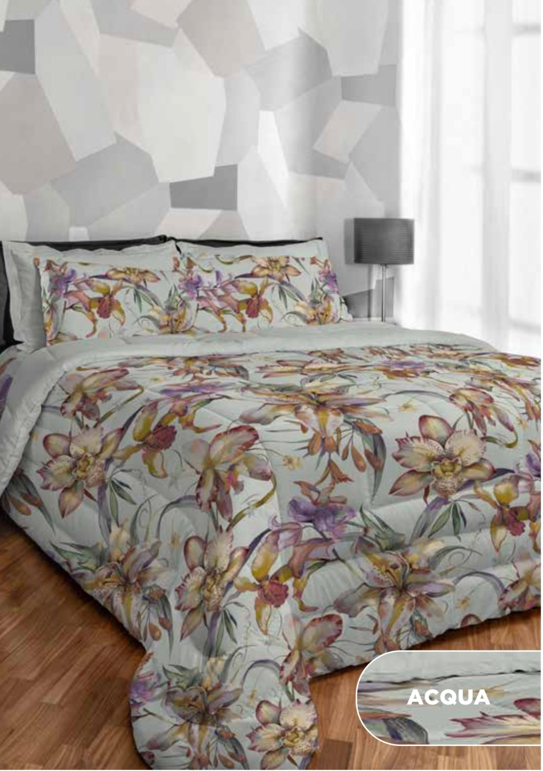 Trapunta acca24 in stampa digitale imbottitura effetto piuma anallergica 350gsm esterno effetto mano pesca